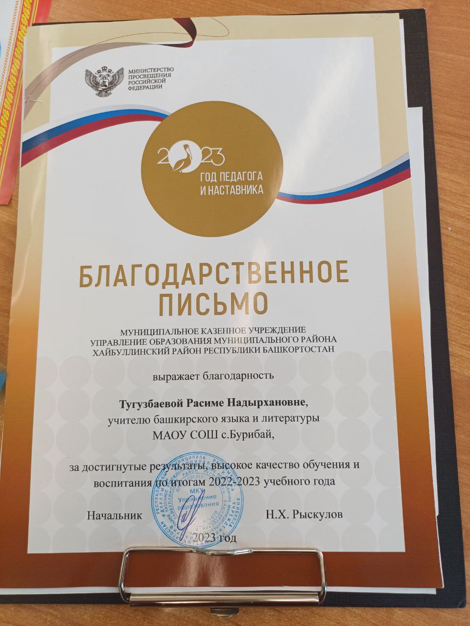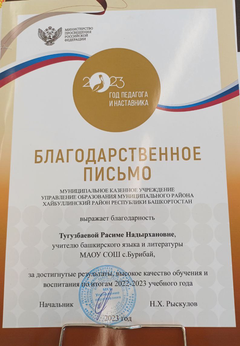 Я, Тугузбаева Расима Надырхановна, работаю в МАОУ СОШ села Бурибай учителем башкирского языка и литературы с 1991 года.